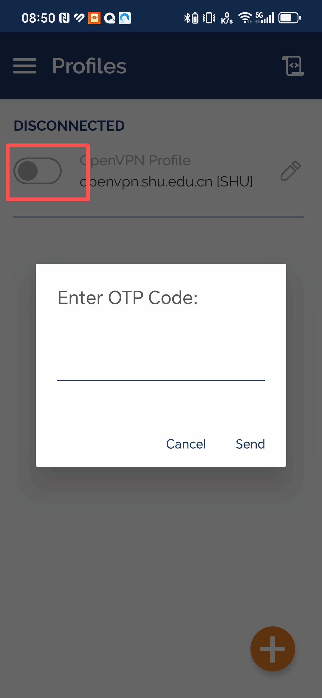 5、输入用户名密码,即学(工)号和一卡通密码,点击链接按钮,弹出“Enter OTP Code”窗口