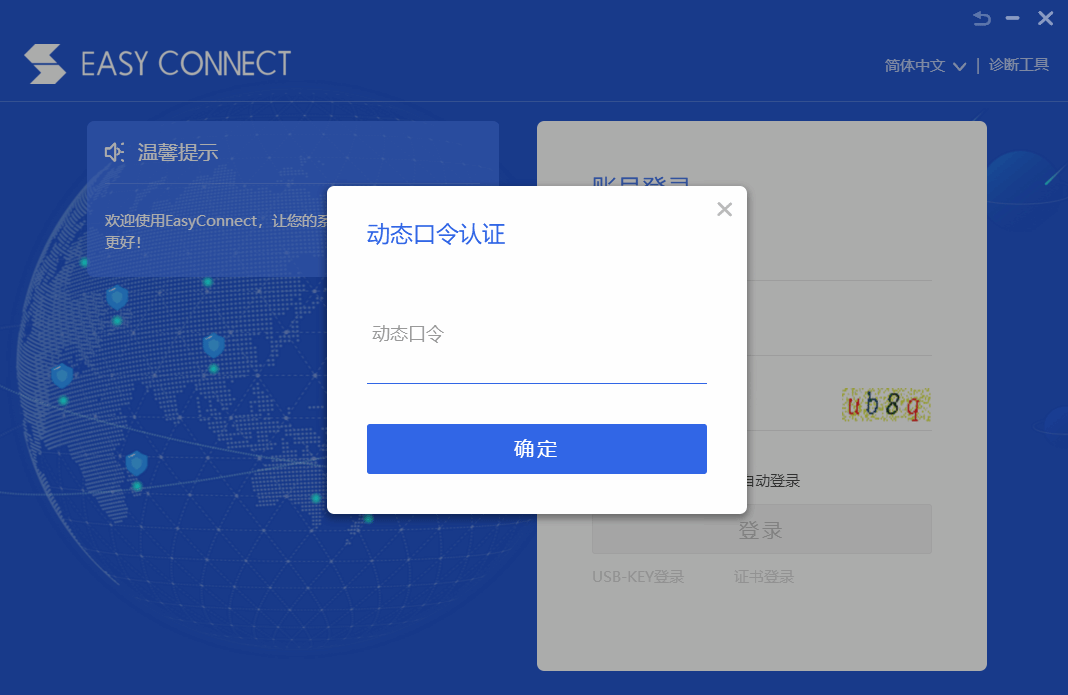 6、输入用户名密码,即学(工)号和一卡通密码,输入图形验证码,点击登录,弹出“动态口令认证”页面